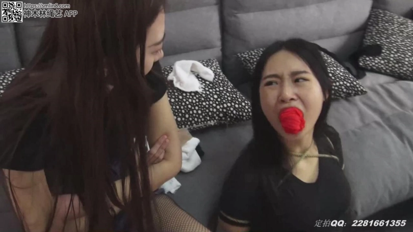 喜欢堵嘴的漂亮女主人一个人在家玩堵嘴游戏,忽然一个女小偷溜了进来,女主人来不及拿出嘴里的毛巾,就从背后勒住了女小偷的脖子,并用自己嘴中的毛巾塞住了女小偷的嘴巴,二女你来我往,发生激烈争斗。。。。。。