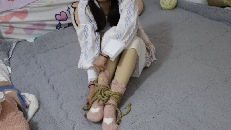 洛羽姐姐绑菲妹儿,几种常见绑法,驷马绑,肉色打底袜,要求在一定时间内脱缚,不然就要挨洛羽姐姐鞭子