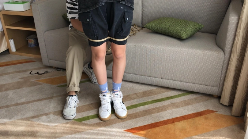 解语对我们这个小作坊来说有一个特殊的身份,因为严格来讲,她是我招到的第一个模特,只是在试镜之后一直处于半退圈状态,直到前不久才复出,所以现在才将她的试镜片发上来,为后续的作品做个铺垫。招到解语的那天,我在当地各大高校的兼职群里发了一天的广告,经历了数十次被骂变态和秒删之后,到了晚上心灰意冷的我完全不抱希望的发了最后一次广告,就招到了解语。解语以前做过模特,看完她发来的照片,我以为身高174却只有90斤的她一定是一个非常奔放狂野的人,结果见了面却发现她是一个非常腼腆的温柔女孩,颇具南方女子的温婉气质。那天酒店的光线非常好,麻绳缠绕在解语纤细的胳膊和腿上,让她那雪白的肌肤显得格外诱人,白色的耐克板鞋和背心短裤更是让她在柔美中透着一丝酷酷的感觉。酒店房间里有一面大镜子,解语一边被绑,一边用好奇的眼神看着镜子里的自己,腿绑上之前,还会趁我找绳子的间隙不停活动带上脚镣的脚,感受被束缚的行走。在TK环节,我问她你能接受挠痒痒吗,她竟然无意间说出脚还好但是腰上痒痒肉更多,结果便是遭到了更疯狂的蹂躏……软妹纸解语的更多曼妙表现,等你在片中与她邂逅。