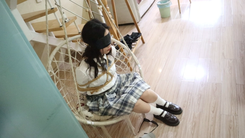 打扫的叔叔在门外打扫卫生,谁又能想到,在这个房间里,有一个被绳子紧紧捆绑的美少女在呢
