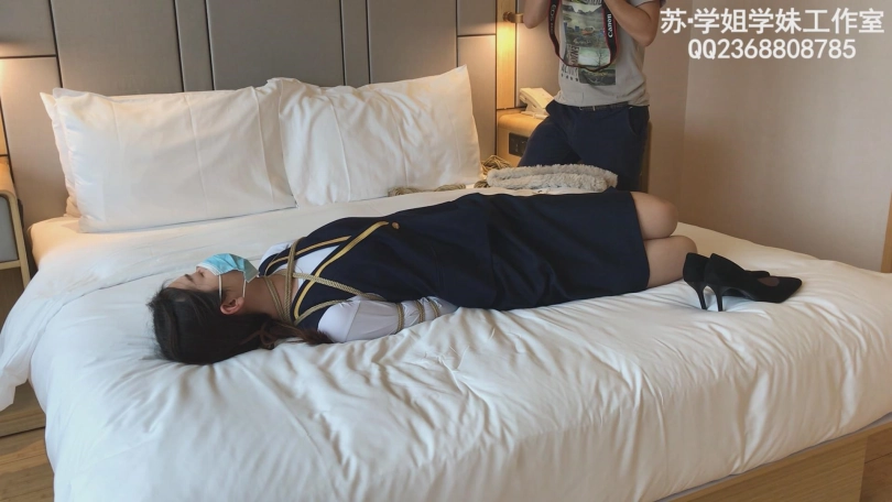 在这部复出作品中,解语身着空姐制服和高跟鞋,本来身高一米七多的她穿上高跟鞋直奔180,绑五花的时候我都要够不到她的肩膀了。粗心的解语下课直接赶过来拍却忘记了带配套的衬衫,只好穿着白色的打底衫拍,可没想到效果却意外的好,把本就苗条的身材显得更有韵味。五花驷马+欧式直臂,还有脱鞋后的裸足大长腿。感兴趣的朋友不要错过哦!