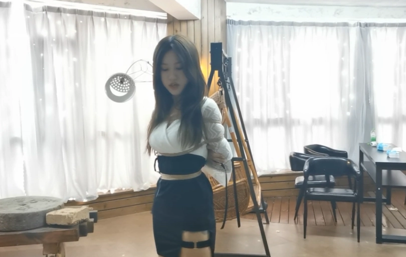 绒绒:这位助手同学可真是专业呢,下手可不是一般的黑。大家看,我还有逃脱的可能嘛?(跳着转一圈,展示捆绑)