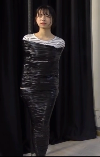 这一次她又感觉到自己的身体不受控制了,而这一次捆绑她的不是绳索,而是保鲜膜,小A的全身都被保鲜膜缠了个结实