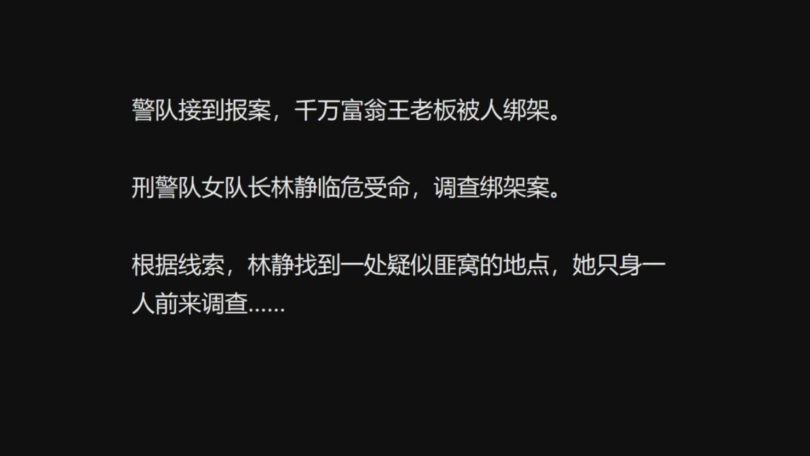 第一集大致剧情:女井队长林静接到报案,大富翁王老板被人绑架。林静通过调查,只身一人找到了匪窝。就在想要救出王老板的同时,匪徒来到,将林静和王老板一起绑了。并将两人进行花式连缚,口水搜集。并且在胁迫之下,命二人相互喝掉对方的口水。林静疯狂挣扎,但是毫无用处。两人的命运又将如何呢?