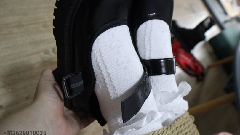 这时一双手慢慢的靠近这个可怜少女的身体,慢慢脱下她小皮鞋,随着这双手碰到了小女生穿着洁白花边小棉袜与白丝的小脚,