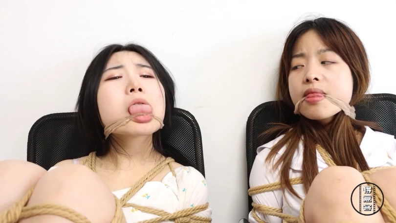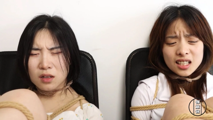 师生二人被绑在椅子上,两双白嫩的小脚晃来晃去,长时间的折磨之后二人双双失禁。