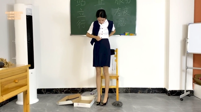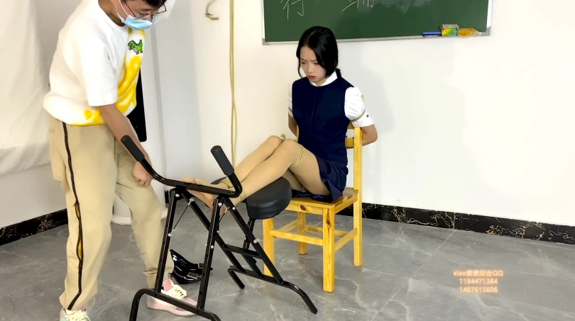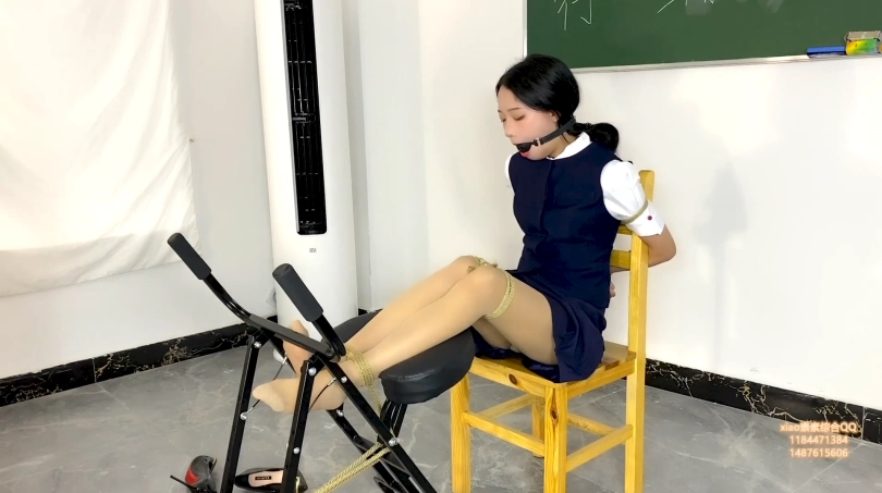 第二天正式上班,工作人员拿来一套空姐服让素素换上,并且练习走秀,走完秀把素素固定在椅子上脚也完全固定好,拖了高跟鞋进行tj和 tk 素素求饶也没有用,最后还把素素 绑到四方桌上,进行tj到gc后 离开,让素素这样呆着!