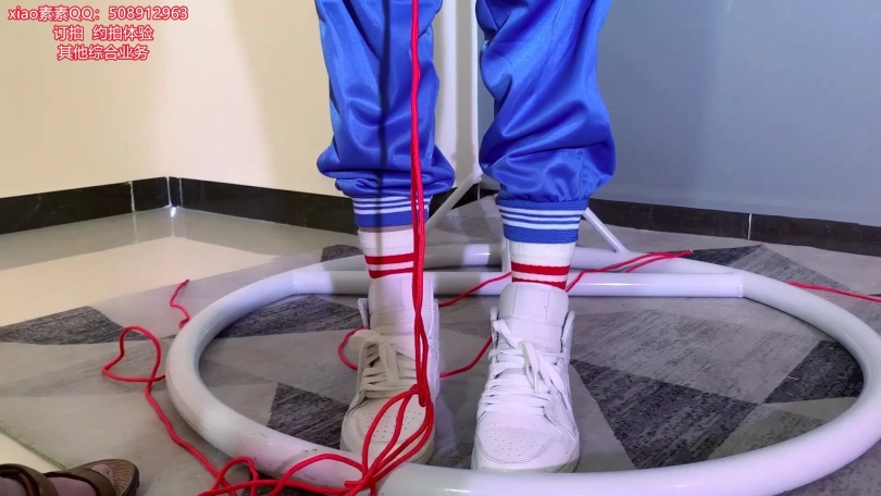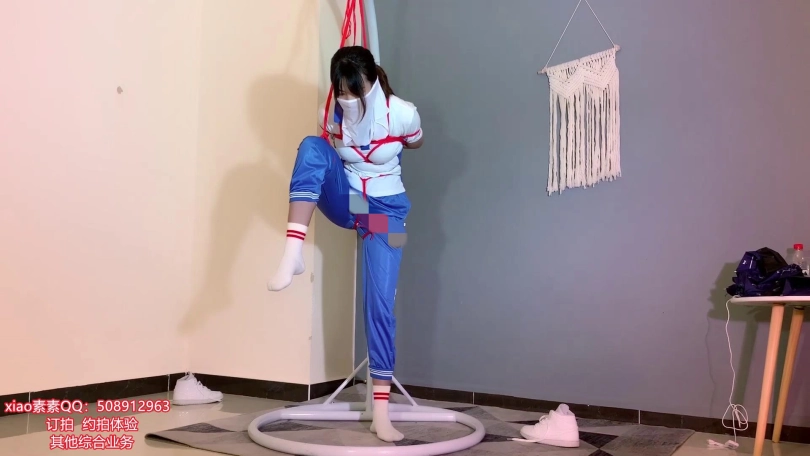【xiao素素】学生服高邦白鞋 红条白袜 配红绳 捆绑单脚吊 脚尖顶地 和 大字床上捆绑 上下集