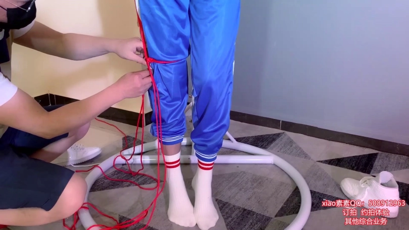 xiao素素 被两个zisi捆绑TJ 强制GC,第一个是复杂的日式后高手xiong绳gu绳,固定bangbang强制,手拉高脚尖顶地,被TJ一段时间后脚尖勾着袜子不能掉下来,要不然会被惩罚,达到gc后换chuang上KB,大字捆绑全身固定,同样固定bangbang强制两个zisi都是比较好用bangbang 的姿势所有在这样的情况下M很容易达到并且躲不掉!