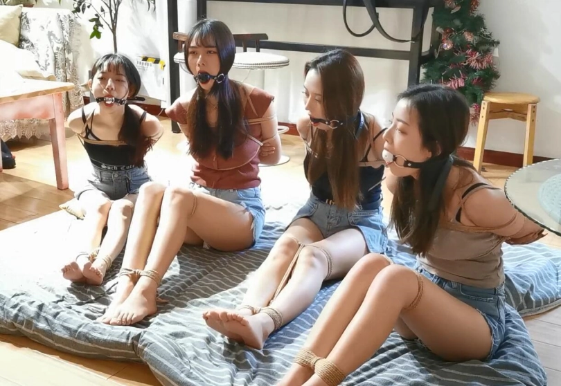 【绳师奥特曼】姗姗,梦怡,绒绒,兔兔四位美女,日式紧缚,戴口球挣扎