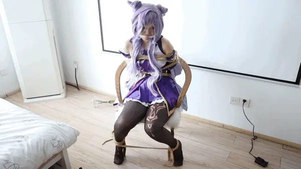 你给我老实点,看你长得这么好看,绑起来才会更好看呀,说着把一条白丝袜勒住了刻晴姐姐的嘴巴