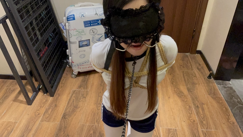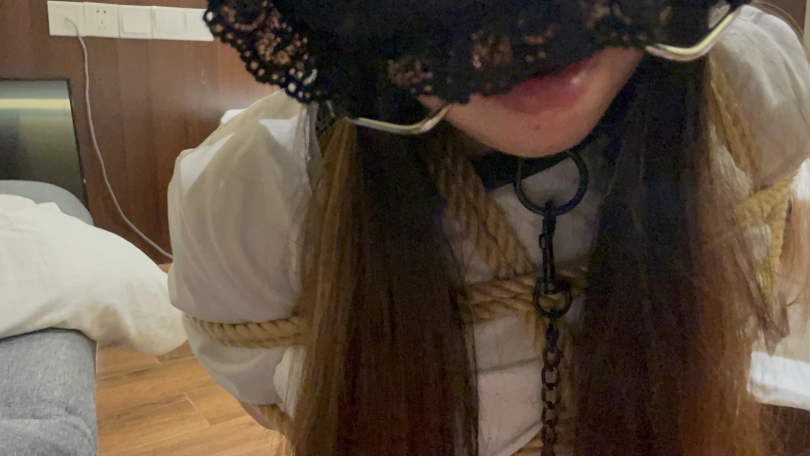 【杰仔】新人心心调教记 跪立行走边走边流口水+真实抽打呻吟+舌头玩弄+筷子虐舌+两个棒的享受+口水直流+内裤湿了声音特写+脚和腰部tk