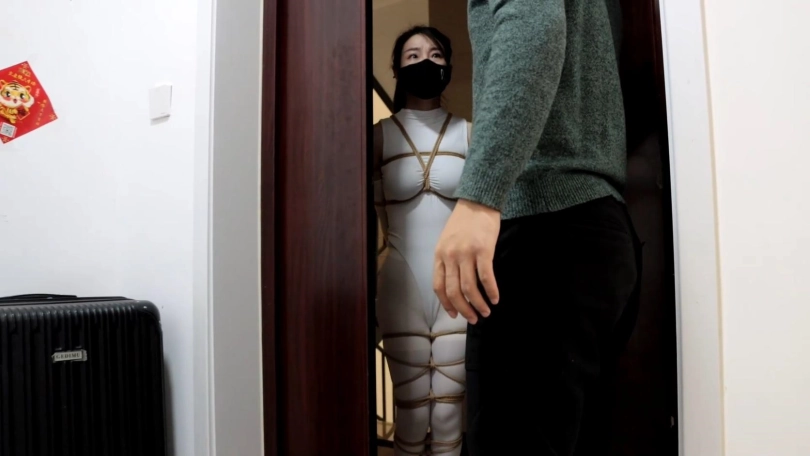 【得意客】《开门遇上密集捆绑神秘白丝御姐还不给解缚》双层白丝连指手套 双层白丝裤袜 白丝紧身衣 密集捆绑多重堵嘴 奇怪白丝御姐