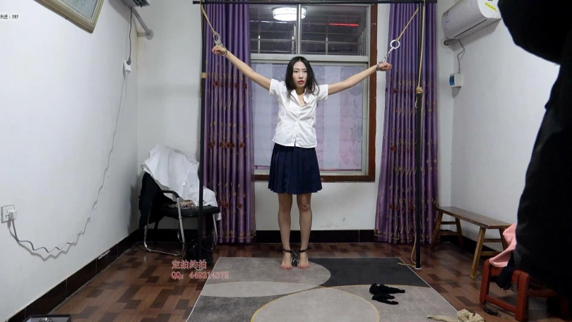 【子衿】妍如真空镣铐网调实录 带口枷夹舌头 筷子夹脚趾 镣铐吊绑踮脚尖 电极贴片