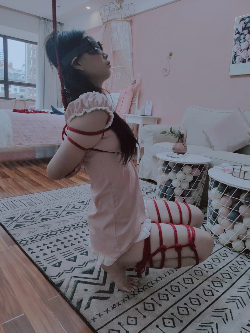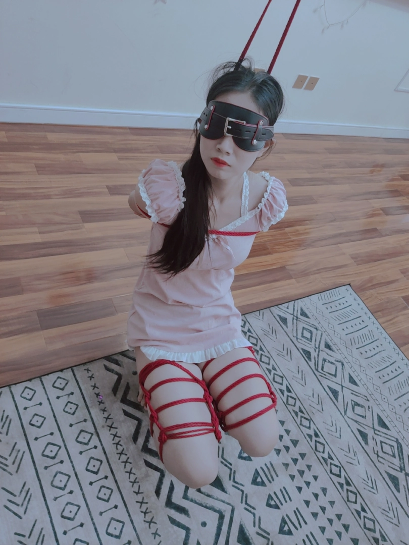 把长腿少女的双腿折叠捆绑,让少女坐不下去也站不起来。然后吊高她的双臂,让少女只能在两种痛苦中作出选择:要么踮起脚尖,让脚尖承受身体的全部体重以此减缓胳膊的压力,要么选择放下脚丫,让胳膊被狠狠吊起...