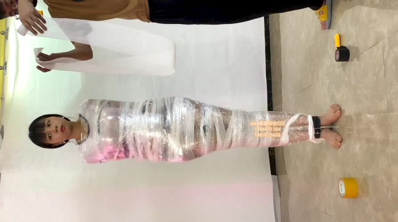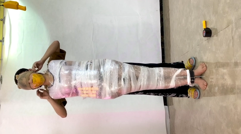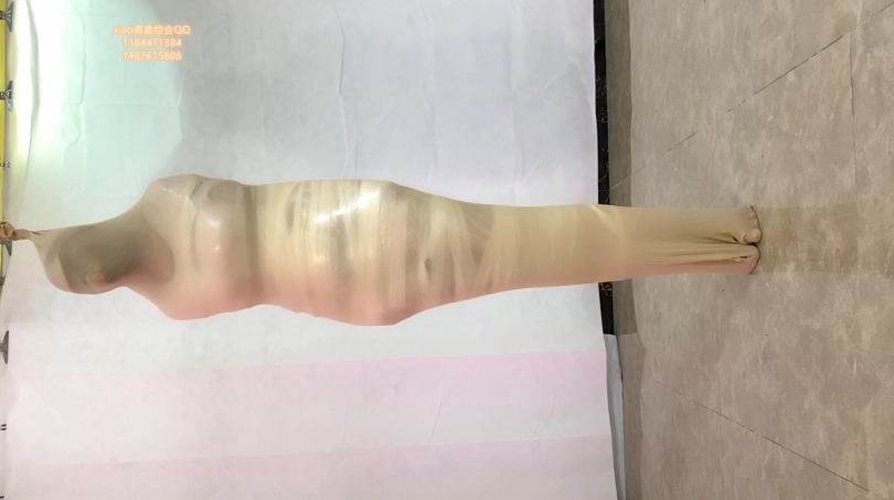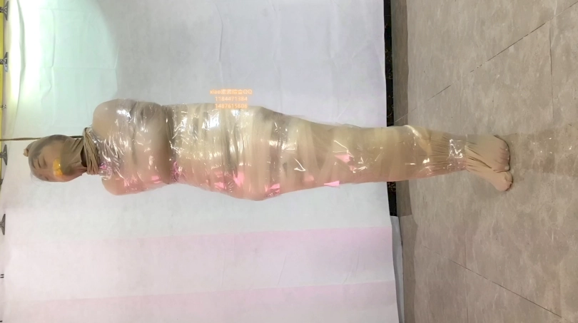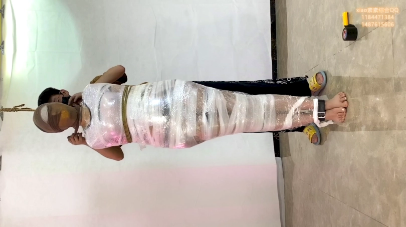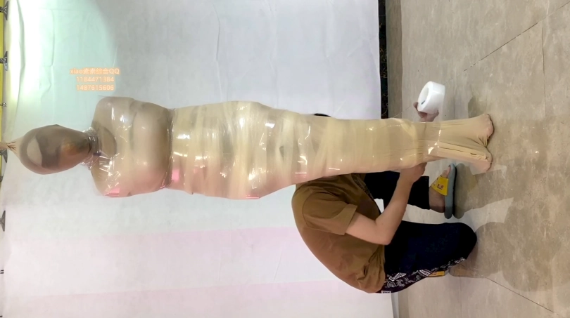 素素被严厉包裹起来的放置 胶布 胶带 透明胶 保鲜膜 丝袜睡袋 原味 各种包裹都用上 放置tj 起来