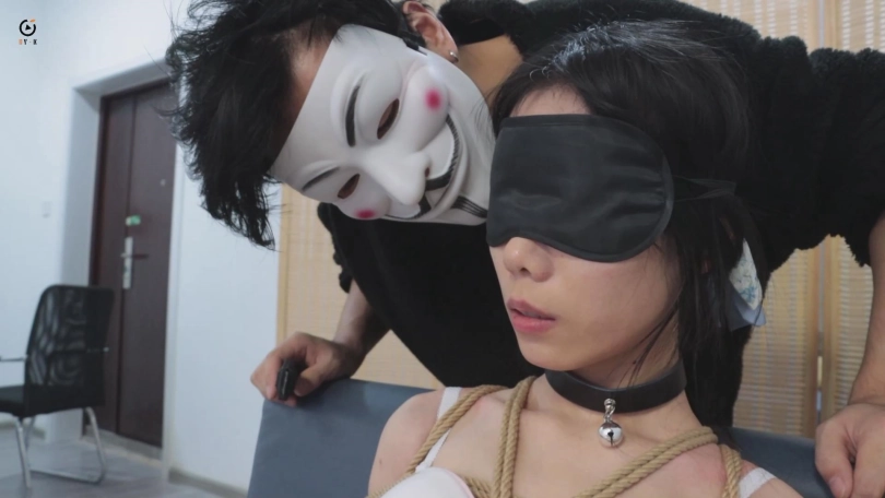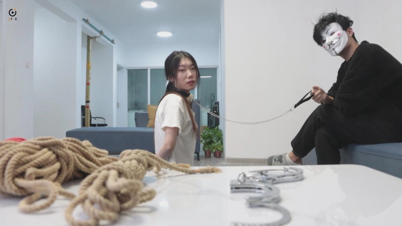 然而,当‘劫匪`撬锁进入房间后见到小月的那一刻,便吃了一惊,小月没有起疑,反而夸赞起大山的专业,而后撩起衣服,展示被绳索捆绑的身体,见他仍然无动于衷,便想着是大山想让她主动一些,便以小狗一般的姿势将项圈的缰绳系好,将其交给她的‘劫匪`先生。