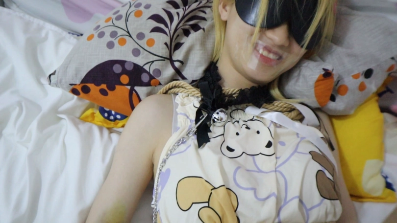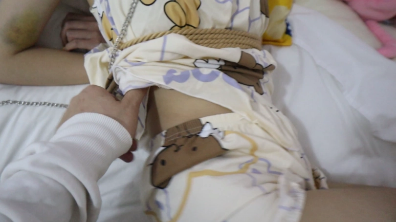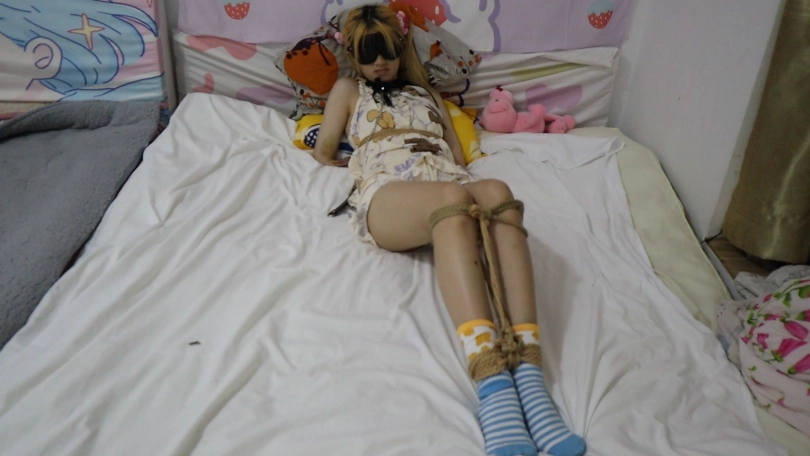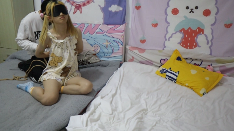 双马尾少女都换好睡衣和花棉袜准备睡觉了,没想到在睡觉前还要被绑啊!
