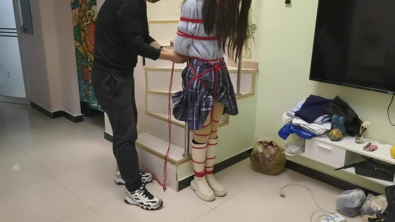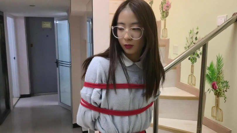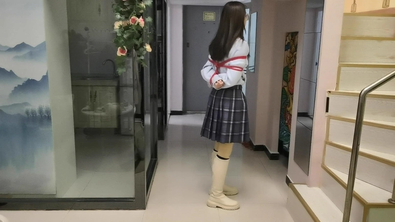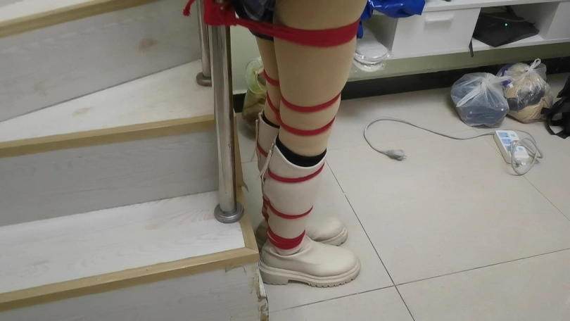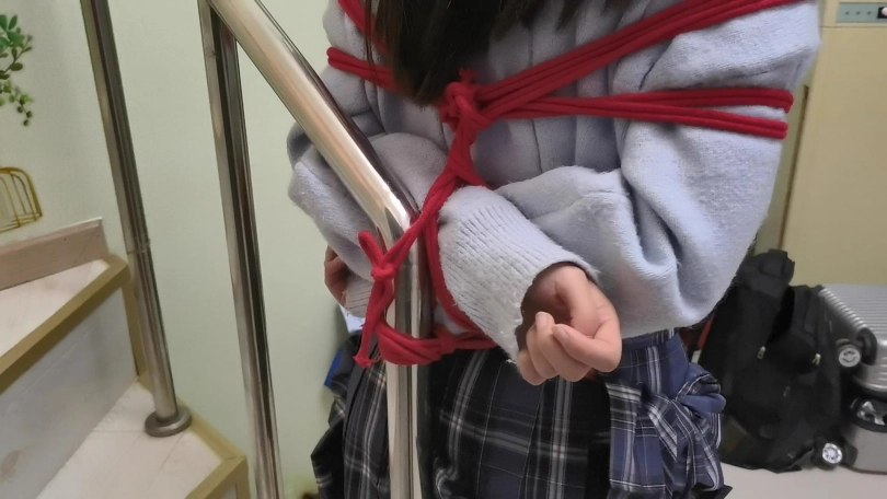 【JS】采文 绑在栏杆上的女孩日式全身紧缚红绳长靴
