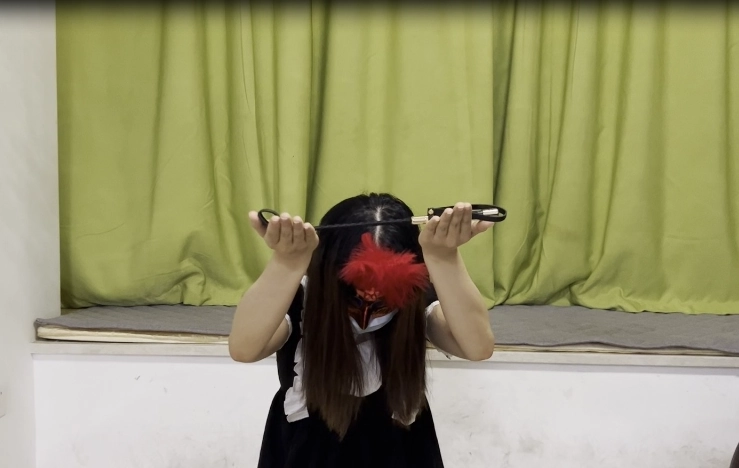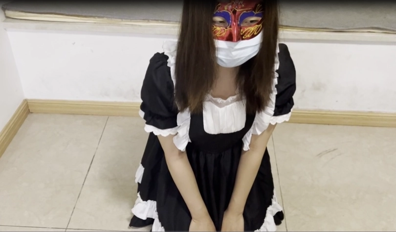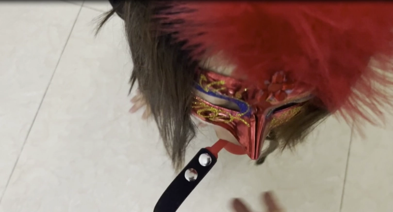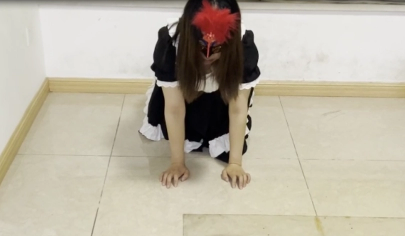 2.礼仪侍女站姿训练。然后跪下低头托举皮鞭。