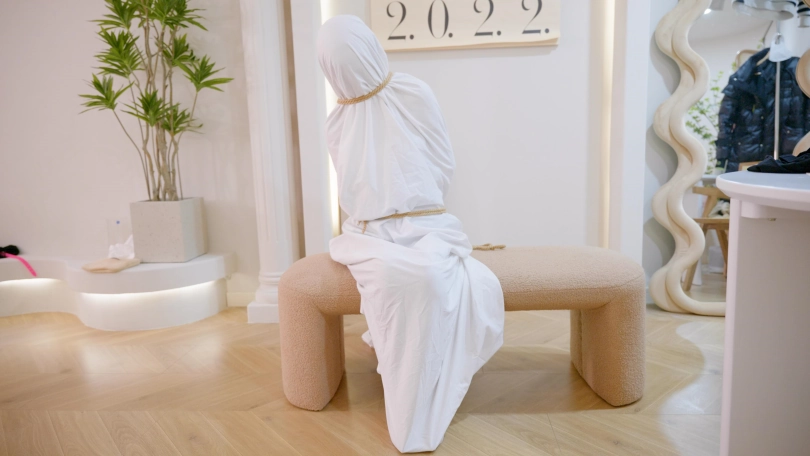 美女被换装捆绑。最后被换上ol套装以后重新捆绑装袋