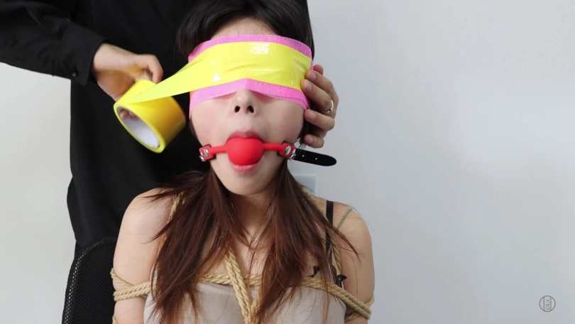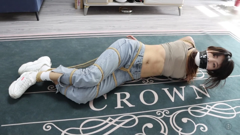男主在宿舍玩着手机,辅导员发来消息直接批评他看到消息的男主生气了,心里大骂学生会乱扣分。这时门开了,一个学姐走了进来,来到男主身边对他说:同学,我是学生会学姐,你知道现在是什么时间嘛。男主没看学姐就说到:没礼貌的东西,不知道进来先敲门嘛。学姐有点生气,推了他一下:问你话呢,你什么态度啊,这么拽。男主还是只顾玩手机说到:就这态度你能把我怎样。学姐生气了一把抢过他的手机,说到:看我还治不了你了,再把你们班的分扣扣。被抢了手机的男主生气后,站了起来推了学姐一把说到:找打是吗?学姐不甘示弱也推了他一下:我劝你不要不识好歹。男主彻底生气,冲过去,反扭学姐双手然后将她放倒在地上,再坐到她身上,学姐开始挣扎,上身扭动,脚乱踢。这时男主一手抓住她头发让她抬头,一手拿了刀子驾到她脖子上说到:早看你们学生会不顺眼了,再乱动就弄死你。学姐说:有话好好说,我都听你的。男主说:得把你绑起来才能好好说。然后拿来了绳子,接着坐在学姐身上拿来个矿泉水瓶,让她咬着瓶盖,叼着瓶子不能吐,然后反绑学姐双手,又压住学姐大腿再将她双脚抬起来将脚腕交叉起来捆绑,捆绑完双脚后,又用绳子将手腕脚踝连在一起,捆绑好学姐后,男主又坐在女主身上拿掉她咬着的矿泉水瓶,接着让她张大嘴,随后将一两双白棉袜塞满后,男主将女主头发一把抓起来,然后用白色绷带缠绕她的嘴巴。缠绕几圈后,又用黑色胶带缠绕封上,接着拍拍她的脸颊说到:正好老子要出去一下,回来再玩你。女主大声呜呜呜。男主走后,女主在地上挣扎,翻滚,不停抽动手臂试图挣脱开束缚。一会还真让她解开了,但由于脚是交叉捆绑无法站起来,她就坐着往门口挪,挪了一会,男主就回来了,看到想逃跑的她说到:妈的,还想逃跑。学姐惊慌的发出呜呜呜声音,男主踢了她几脚,然后抓住她的脚把她拖到原来的位置说到:看来得把你绑更紧才行。镜头一转:学姐被五花大绑,跷二郎腿再连鞋绑在一个椅子脚。接着男主解开学姐嘴的绷带胶带,掏出她嘴里的袜子,学姐喘了口气说:求你了,我不扣你分了,放了我吧。男主:现在求饶,晚了。然后捏住她的嘴巴,塞了块毛巾到她嘴里,外面再用长筒袜绑上,接着贴上胶布。接着男主开始挠她痒痒,脖子,脖子,腰。蹲下来脱鞋子再挠脚心,学姐呜呜呜。这样还觉得不解气,她就拿了学姐的鞋子让她闻鞋子。学姐含糊不清的说:我错了,求你了放了我吧。男主玩腻了,把鞋一丢,然后解开学姐嘴巴,掏出毛巾,学姐大口吸气,可一下子,男主又用肉色丝袜塞到她嘴里,外面再戴上红色口球,堵好嘴后,用粉色绷带缠绕眼睛,再用黄色胶带缠绕封上她的眼睛,再接着用肉色丝袜套住她的头,外面再用粉色胶带封上。套好头后,男主又用绳子加固了学姐的椅子上的束缚,接着说到:我去睡会觉,你给我老实待着。男主离开,学姐呜呜呜叫着并挣扎。