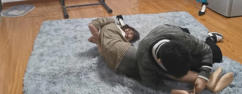 心得体会:绑住一个疯狂挣扎妹子的双脚,真的很难。大家可以试试~~~~