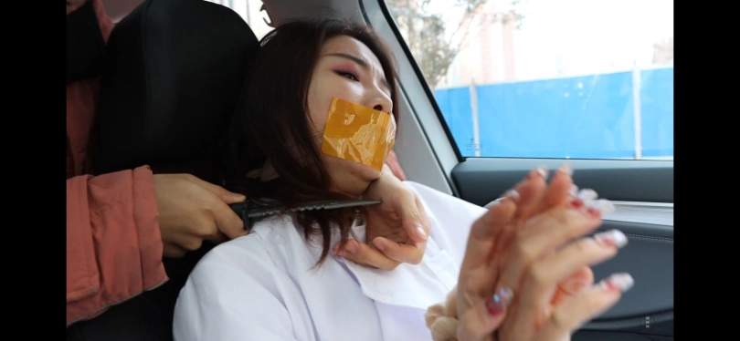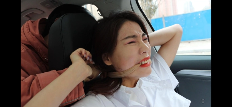 一含遭遇同事报复,医生护士服装扮,肉丝、白丝、车内遭遇袭击,被勒嘴后强硬封嘴,丝袜捂鼻,险些遇害。