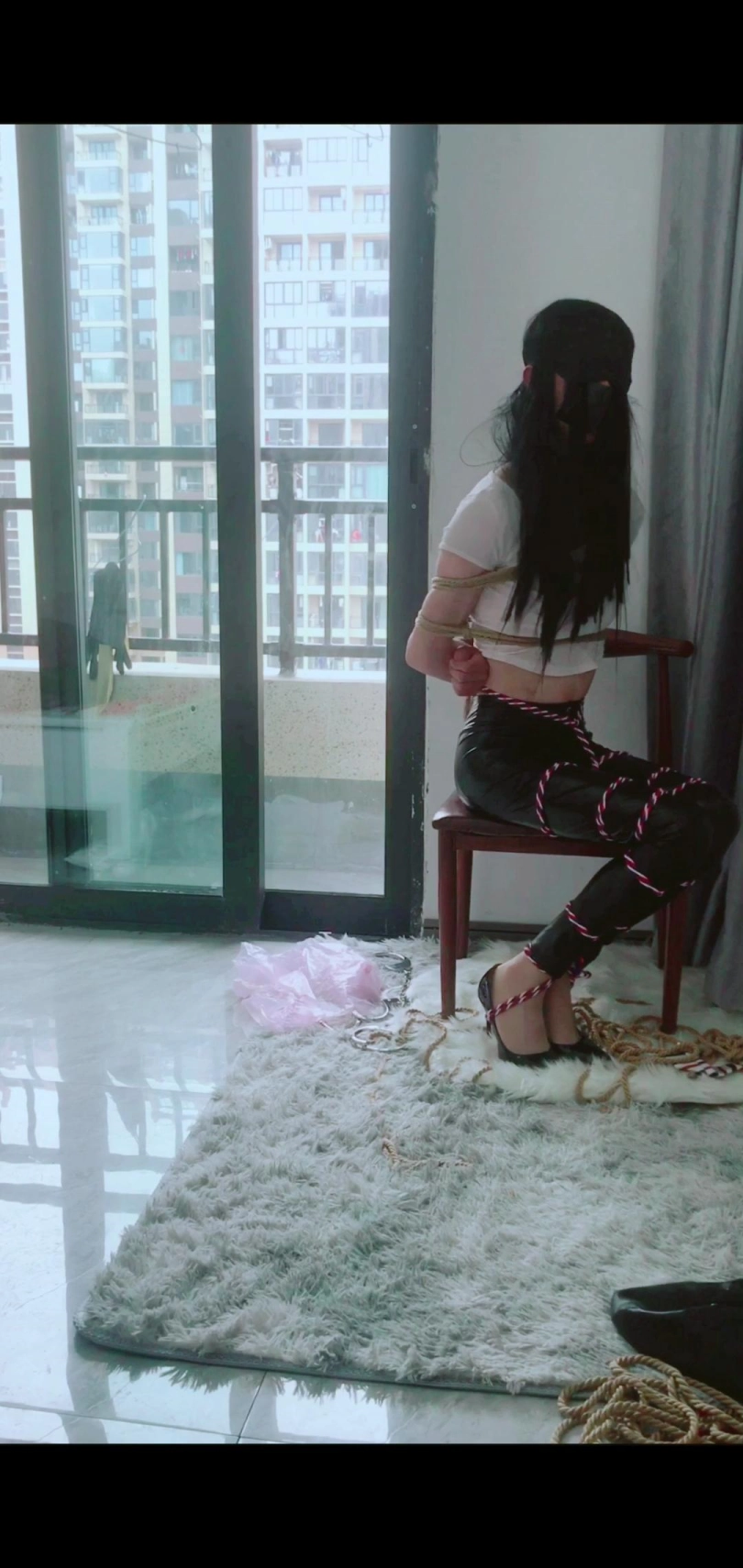 终于还是再次尝试了这种折磨人的玩法,天气开始热起来了,这种玩法特别的耗体力,没一会身体就被汗水打湿了。这次换了一套紧身皮裤,好像这皮裤不是很透气,感觉有点闷。金属类的特点可能就在于它会对接触到它的每个部位带来伤害,因为是金属的特别硬,在加上需要对人进行拘束,不小心的话还是很容易受伤的,很容易就会被磨破皮,上个视频之后才发现腰部居然受伤了,欲哭无泪,对于这种道具的话还是要特别小心的。这次好像手腕绳子缠绕的非常紧,真的是每时每刻都在受着折磨感受着青筋爆起的感觉。每次玩这个都得休息好几天才能恢复过来,记得上一次玩沙袋好像只是坐着都能觉得非常疼。