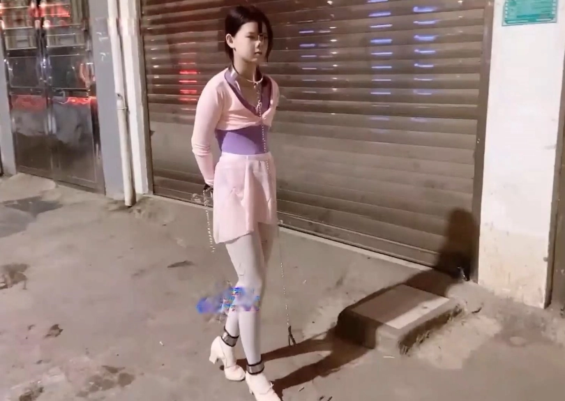 户外部分更是大胆精彩,可爱的小女奴戴着各种道具、镣铐走在熙来人往的街道,走进超市购物、走进小吃店。。。
