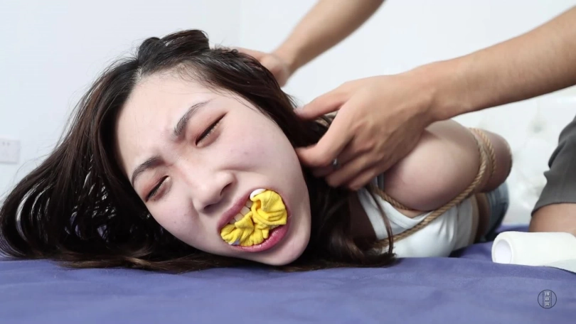 安安又把钱花完了,没办法的她只好打响了男闺蜜的电话,平时都能借到钱的她,这次碰上了聪明的男闺蜜,男人说:除非做他女朋友,不然不借。安安可不愿意,还当面骂人家屌丝,还说自己有的是愿意借钱的男人!不是不报,时候未到。安安玩了会手机,穿鞋出门去吃饭,可一开门,男人出现,并将枪[X_X]她的嘴里,把她逼到房间后,然后做屈辱姿势,撅起屁股然后捆绑她。安安被绑得结结实实,手上还套上了白袜,嘴巴被男人用粉白麻叶袜子堵得死死的,再用银色胶带缠绕封上。黄色麻叶袜子封住眼睛,胶带固定。身上绑着绳子的安安只能扭动身子,口不能说,眼不能看。男人还没爽够,把她塞入麻袋里,让她在里面尽情挣扎。一会,男主回来,解开麻袋,解开安安嘴眼封印,又在她的大嘴巴里塞入五张纸巾,接着红色口球戴上伺候,再套入麻袋,又将麻袋套入收纳袋将其运送走。镜头一转,安安被带到不知何地,男主开始对她进行折磨。从麻袋出来的安安被捆绑成驷马倒攒蹄,戴上骨头口球,闻自己的臭鞋,然后男人将钱放入臭鞋里,让她爬过去叼出来,可这是个总不可能完成的任务。任务失败的安安被捂晕,接着结实捆绑在床上,男人用黄色麻叶袜子堵住她的嘴巴,再各种颜色胶带封上,丝袜套头再封,最后写上“肉货”,让她等待命运安排。