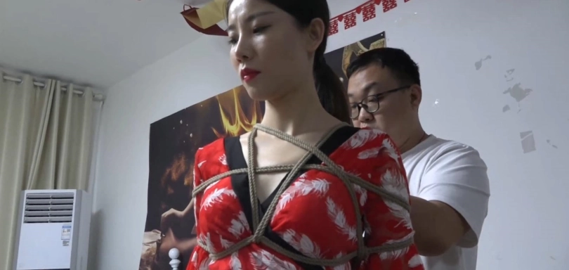 (我个人是很喜欢这部的,男主有种本色出演的感觉,丝毫没有表演的痕迹哈哈,而这件衣服也是非常喜欢的一件,柳洋姐穿起来也是很漂亮啊,这部剧情女主也是女警的身份,后来想着想着剧本就增多了起来,之前人质的身份也是女井,这部就按照人质第二部来拍摄吧)阿光是一名专业的小偷,对于自己的偷盗技术那是非常的自信了,每撬开一扇门便有一名幸运儿遭受阿光的洗劫,不过常在河边走哪有不湿鞋的。这不这天便溜进了一名女警官的家中进行偷盗,非常专业的不放过任何角落的翻着。突然她看到了房主的照片,照片中的女子身穿蓝色的警服。有人说女人像水,细腻绵长,润物无声;有人说女人像花柔柔弱弱,鲜艳美丽;但是有些女子的确与众不同,她们刚毅坚强,她们就是美丽的女警花。照片中的女子不乏女人的娇弱让人不免想要捧在手心好好的呵护,而那一身警装又为她增添了一分靓丽,变得英姿飒爽。(好了好了话有点多了,哈哈)阿光看到这心想,完了这次居然盗到了一名警察的家里来了,得趁房主未回来之前赶紧开溜。果然怕什么来什么,这不我们的女主就登场了。刘小萌因为上次成功的破案所以警局特地的给她放了几天假。刚逛完街回家,穿着高跟凉鞋,一身黑红相间的连衣裙。身为一名女井的她很快便发现家里进贼了,立刻警觉起来,摸出随身携带的手枪慢慢走进房间。阿光在知道自己进入到了一名女井的家中之后立刻准备离开,不过却刚好撞见了回家的刘小萌。阿光心里不禁心想:完了,看来这次得载在这娘们手里了~刘小萌看着眼前的阿光说:“你好大的胆子啊,居然连警察的家也敢偷。”阿光知道自己跑不了了,但是嘴上还是说着:“误会误会,这是误会~”刘小萌:“什么误会,把你手上的东西放下,蹲好~”(柳洋姐好凶啊,把我们的小偷先生吓得不敢说话了)阿光只能老老实实的蹲在地上。刘小萌拿着阿光的皮包说:“让我看看你到底偷了些什么东西。”阿光的包里什么都有,都是一些从自己房间偷出来的东西,不过她看到了几件有趣的东西,只见她从皮包下面还翻出了几捆绳子一双丝袜几捆纱布,一个塞口球和一个眼罩。看到这些东西她顿时来了兴趣,转过头对阿光说:“看来偷的东西还真不少啊,这几捆绳子干嘛用的,你是想抢劫未遂变为绑架吗?”阿光:“警官,都说了是误会了。”刘小萌:“误会,那好我给你一个机会,你可以用这些绳子将我绑起来,要是我挣脱了你就乖乖的束手就擒,要是挣脱不开,那我身上所有值钱的东西全部交给你。”(什么还有这种好事?我没听错吧)阿光有点怀疑自己听错了,居然这么嚣张,不过还是壮起胆子有些不相信的问:“你说的是真的啊?”刘小萌:“当然是真的,快点吧!”阿光:“你拿枪指着我,我哪敢啊!”刘小萌笑着把枪丢到一边,老实的将手背到了背后。阿光:“先说好,你不能打我,要是挣脱不开钱全归我,你也不能找我麻烦。”刘小萌:“趁我没反悔之前快点。我不骗你。”得到了她的回答阿光放下心来说:“那还怕啥了,你好等着吧!”阿光很快就将刘小萌驷马捆绑起来,拿起口球准备给她戴上,说:“戴上这个不介意吧!”(都捆成这样了,介意还有什么用啊)戴上口球眼罩之后,阿光得意的说:“嘿嘿,你就开始挣扎吧,你是绝对挣脱不开的。钱全部归我了。”将刘小萌捆绑起来之后阿光胆子也大了起来,便又开始进屋子里找起了东西。而被驷马捆绑的刘小萌也在不停的挣扎着,想着办法解开自己身上的绳索~
