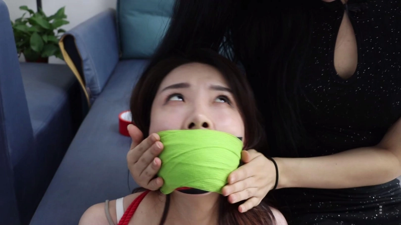 看点:细致塞嘴过程,胶布绷带多重缠绕封嘴,女女挑逗。