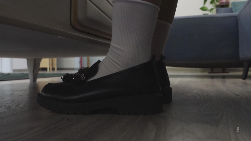 最终,她终于完成了任务,瘫坐在卧室的床上,取出钥匙后,她终于解开并脱掉了折磨了她半天的透明马丁靴,脚底被红豆硌的生疼,小清缓缓抽出嘴里的白色长筒袜,感叹自己只穿了那么一会儿味道就这么大。