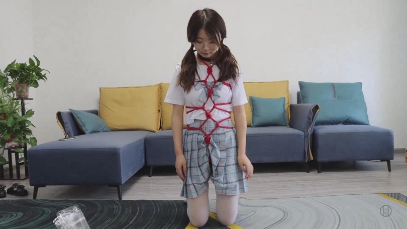 好不容易将东西准备整齐,去掉了绳子束缚的小清将口中被口水洗涤一遍的内裤取出,跪坐在道具前,小清率先戴上了象征着奴隶身份的项圈,只要带上项圈,那么她便失去了小清这一优秀学生的身份,而是一只无法反抗主人命令的奴隶。小清又用红绳给自己绑了一个龟甲缚,这是她最喜欢的花式,融合美感与惩罚为一体(作为模特的清也非常喜欢龟甲缚)。