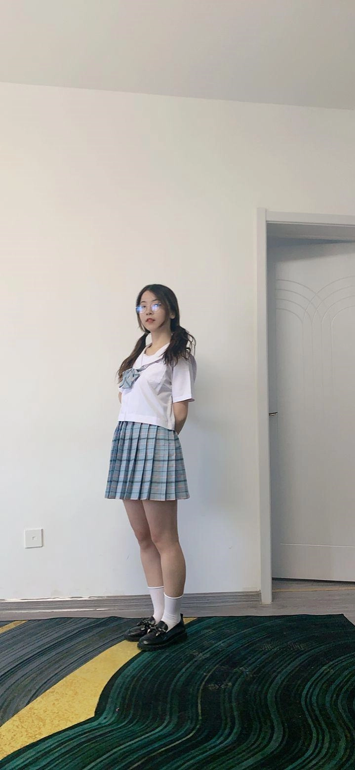 看点:双马尾+天蓝色JK制服短裙+过膝长筒丝袜(绝对领域福利)+白色中筒丝袜套冰冰袜(上次谁说的丝套棉来着?)+失禁的可爱猫爪内裤堵嘴(当然不是真失禁,堵嘴自拍很可爱)+自缚后蹦跳取物(增加了不少难度,尽情折磨就是了)+自我奴役游戏(详情看下文)+透明马丁靴红豆虐足(铺满了鞋底)+清JK定妆照(感觉跟娜娜有的一拼)
