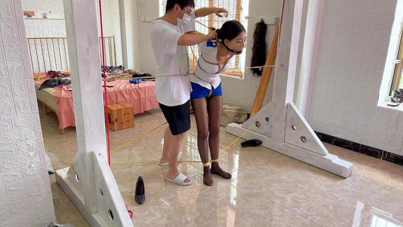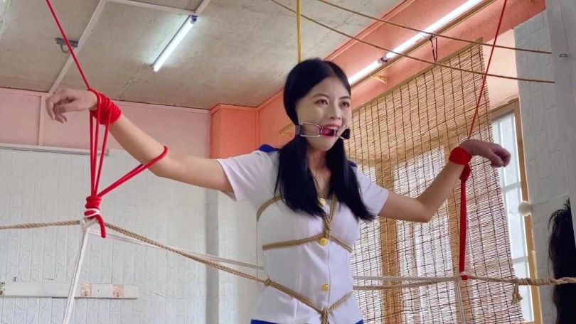 伊伊是我老婆的好姐妹,经常观看我老婆的KB视频,跟我老婆提了很多次想体验一下KB的感受,今天我就满足她这个要求,各种颜色缚身,大字KB,含口环,咬最大的球,嘴里的哈喇子一丝丝的流下来,伊伊内心深处的被虐心态被激发出来了。体验完后表示还想要多种不同KB姿势。