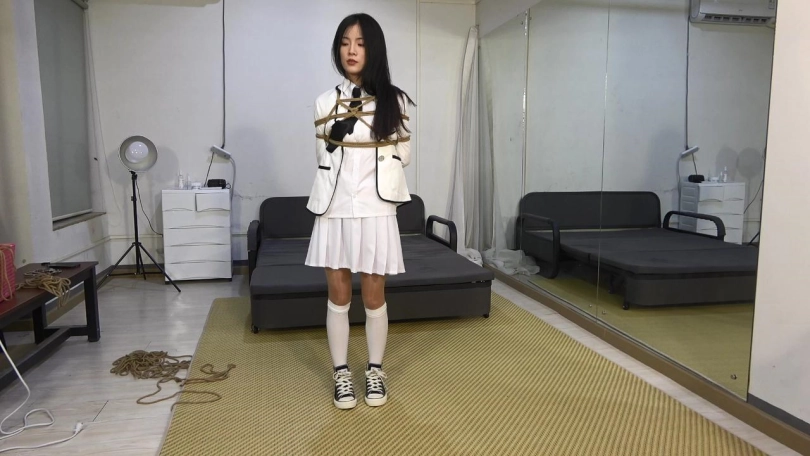 富豪拿小皮鞭抽打小胡的屁股,并收紧绳子,并恶狠狠得说到:你别敬酒不吃吃罚酒!