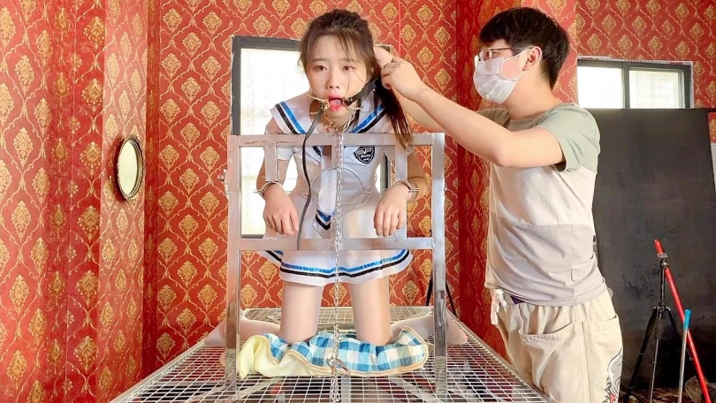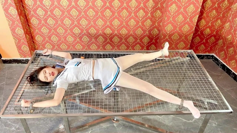 老公把老婆KB在铁网床上,问老婆:gc了吗,舒服吗,为什么哭了啊,然后用TD玩弄老婆,还要老婆跪在床上,慢慢TJ。