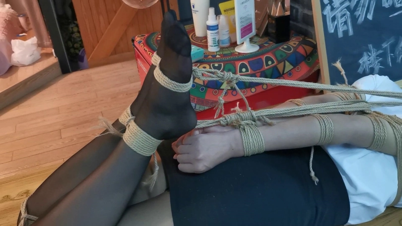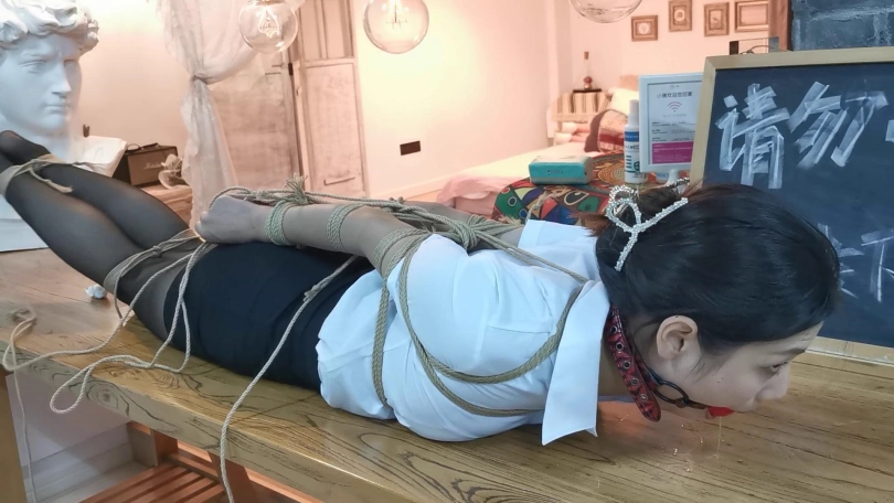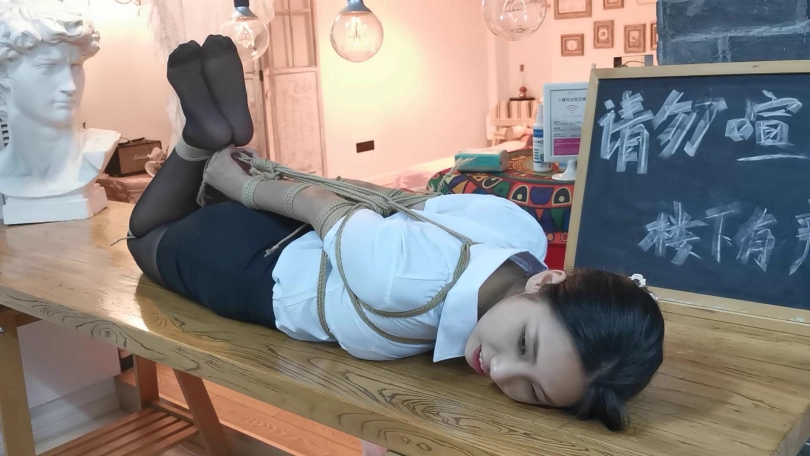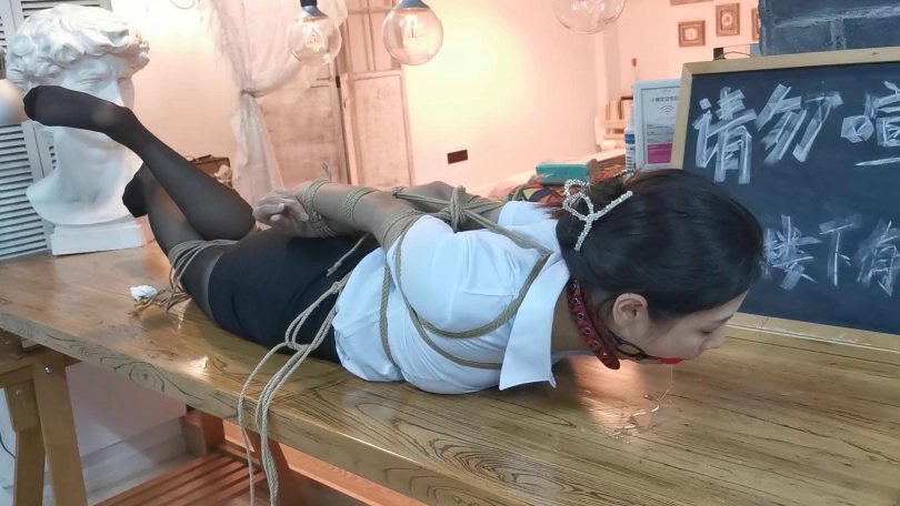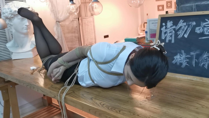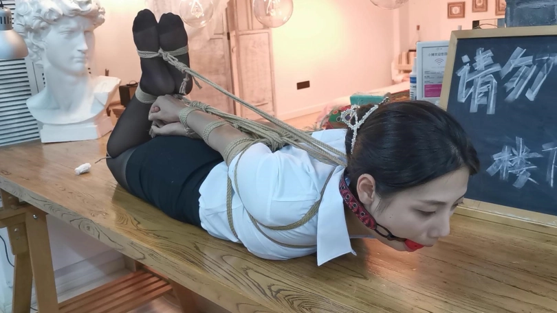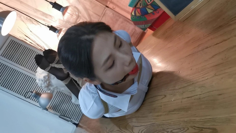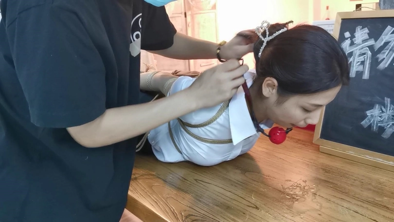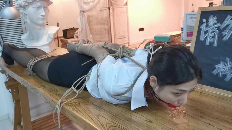 小松是雨琪的同学,同为舞蹈生,身材和颜值都是顶级的,柔韧性更是好的夸张,绑极限欧式驷马感觉很轻松,这次的束缚也很严厉,极限欧式驷马的状态下为了防止出现挣脱口球的情况用脚上的绳子连接口球的皮带,挣扎的时候口球会拉紧。这种情况下小松居然挣脱了腿上的束缚,不过代价就是小松注意力都在努力挣脱束缚上面,口水一直流没停过,拍摄临近尾声的时候的口水都聚集了一大滩,灯光下各种反光,非常有意思。觉得小松完全还有余力,后面会加大难度。