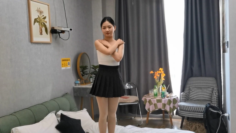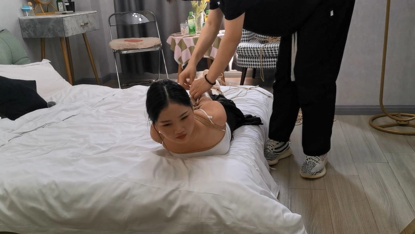 舞蹈老师小九,作为舞蹈老师柔韧性和耐力非常好,直臂驷马没有压力,一身小吊带显得身材非常的丰满,这次绳师绑好之后出去了很久,只留小九在酒店的大床上翻来覆去的挣扎,最后都滚到床底下去了。