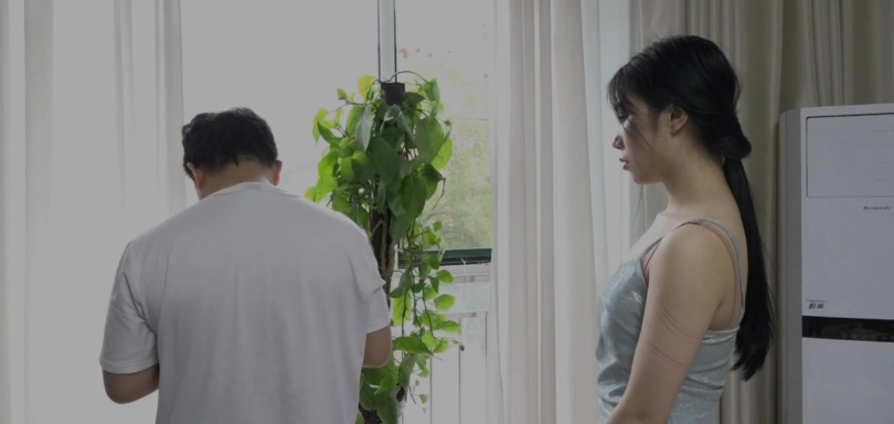 第二天一早夭玲就被陈老板带了出去,不知道她对陈老板说了什么,陈老板选择相信她所说的话。不过陈老板为了试探夭玲,还是让她去帮忙问出刘小萌的身份。夭玲走到刘小萌的面前,(这种姿势是非常难受的,长时间这样的姿势身体会出现酸痛的感觉,如果靠双臂支撑绳子勒的双手都会很疼)夭玲先是解开刘小萌的眼罩,刘小萌看到是自己的师姐,悬着的心也是稍微放松了一下,没等刘小萌开口,夭玲凑到刘小萌的面前小声的说:“嘘!要先逃出去就配合我。”随后瑶玲为了取得陈老板的信任,不得不对自己的师妹进行鞭打拷问,不停的挠着刘晓萌的痒痒抚摸着她的大腿,而被紧缚起来的刘晓萌此刻只能默默地配合自己的师姐~