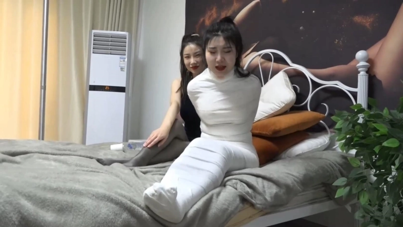 【逍遥】吴晗+柳洋《木乃伊女宠02》明星被包裹成人茧 被化妆喂食 被迫捆绑直播 丝袜美足肆意玩弄