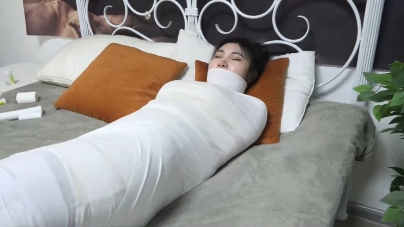 【逍遥】吴晗+柳洋《木乃伊女宠01》大明星被狂热粉丝绑架 被捆绑成人茧 油光丝袜美腿肆意玩弄!诱惑双倍不要错过~