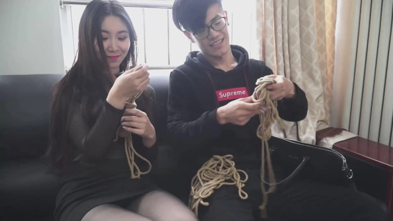 说着,男子开始捆绑小张。
