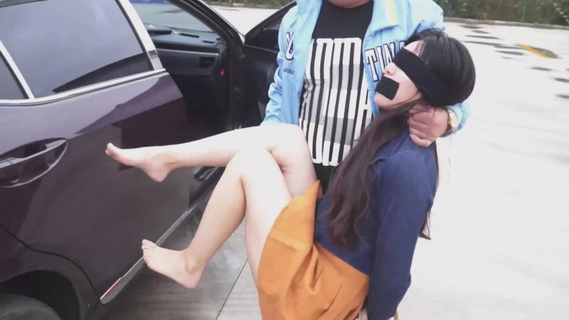 但是挣扎时徒劳的,男子捏的小张的嘴狠狠塞进去,事后还用胶布密密的封住。另外一条丝袜蒙住眼睛。