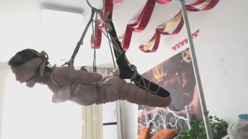 这位女演员,恐怕是逍遥演员中最神秘的一位了,从来不露脸,也不告诉名字,但耐绑能力和柔韧性都是一流的,今天是她最后一次参演了,请大家欣赏她最后的绑吊吧!