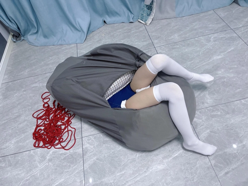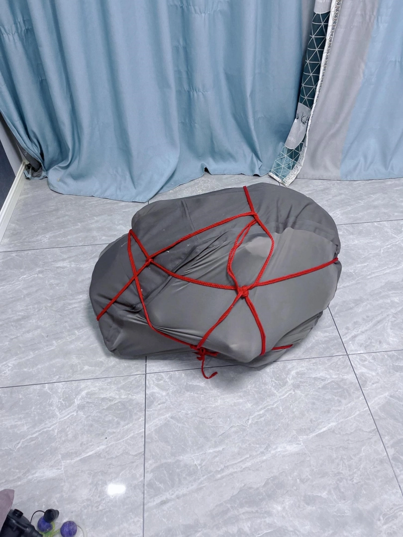 内容:把茶茶双手绑好后,用三床被子卷起来包裹好塞进懒人沙发套里,然后用绳子捆扎。命令茶茶自行脱出。茶茶需要从三层棉被里钻出来后再从沙发袋里破带而出。