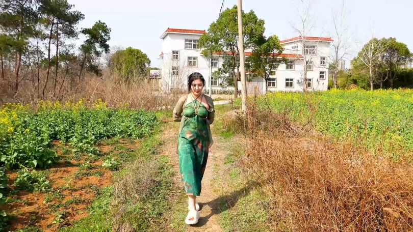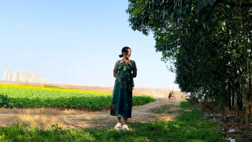 【子衿】小雅户外旗袍五花紧缚,遇到人也不怕