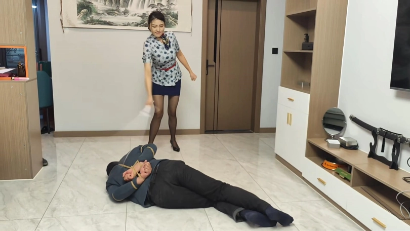 空姐下班一个人走在地下停车场,只听见高跟鞋塔塔的响,走到电梯口,等待电梯的时候发现一个猥琐男,在对着自己做不雅动作,很生气,强忍着回到了家里,没想到这个猥琐男竟然尾随到门口继续,打开房门拉进来一顿收拾....那这是鞭鞭到肉,呼呼声响...耳光,高跟鞋踩踏